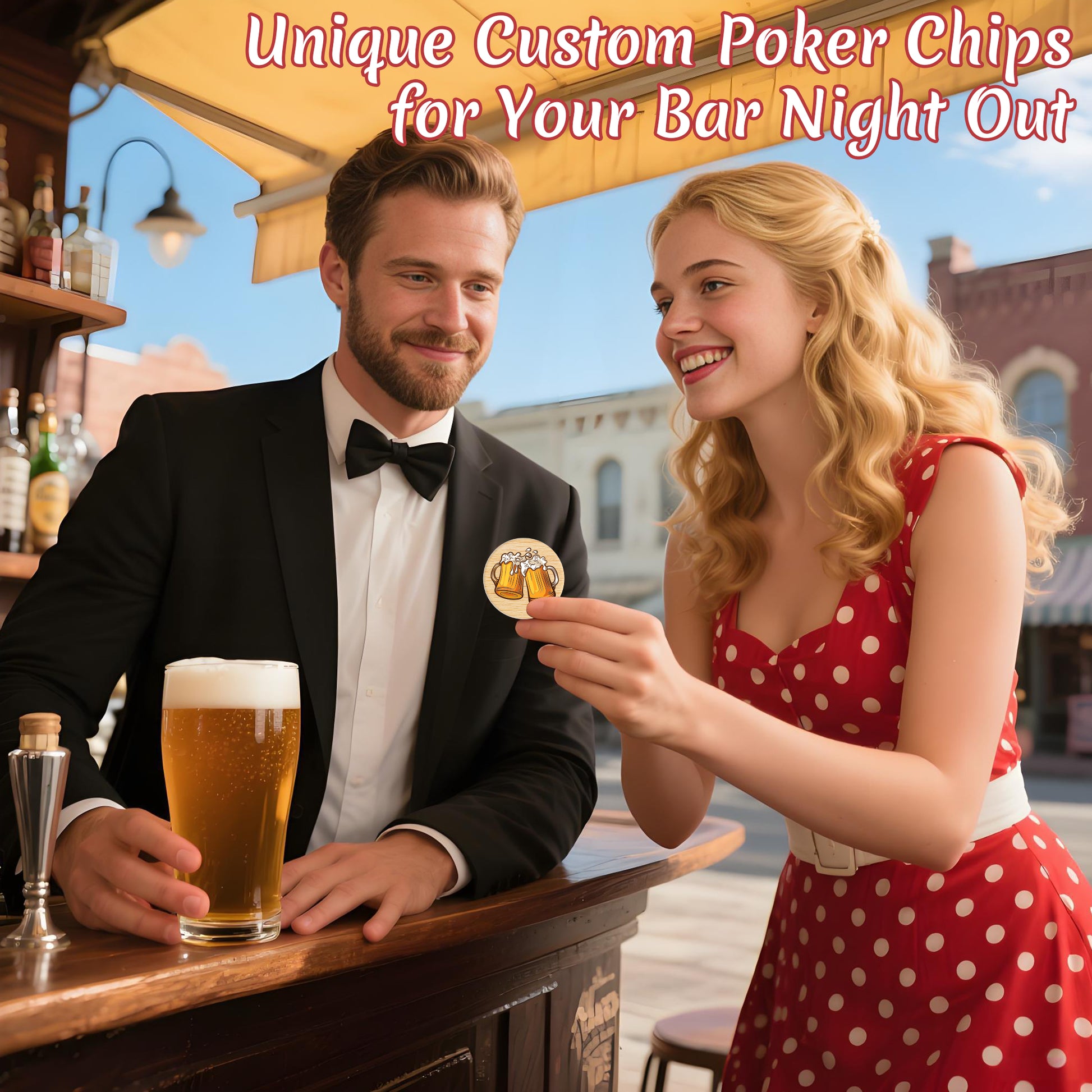 Our laser engraved wooden drink tokens are great for bar, party, wedding, poker and board game, casino night. It also can be used as a thoughtful gift and versatile tool to enhance any gaming experience